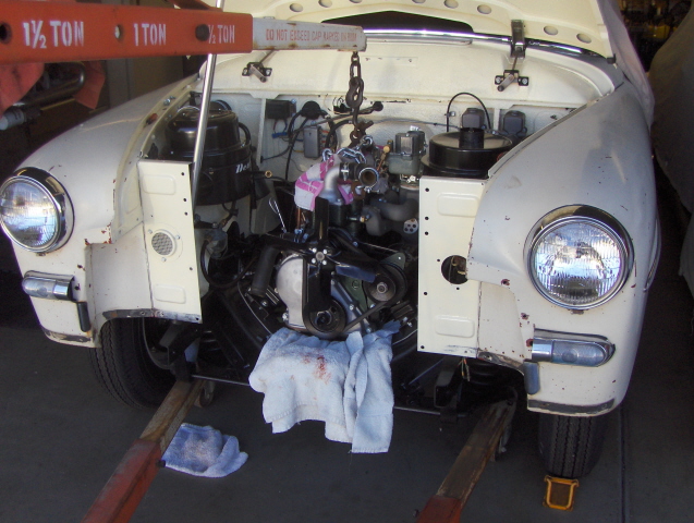 a-okay and it was time to get that baby in there! I had to make sure the engine compartment was protected so I covered it with towels (photos