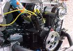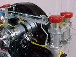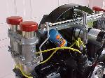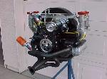 the back firewall. Photos 58-63 shows the 1835 cc engine with 48 IDA Webers with a tall Skat Trak manifold, which was ported and