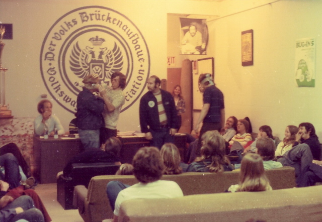 | At a DVB meeting. It's initiation night. Notice our logo; we painted that onto the wall. |